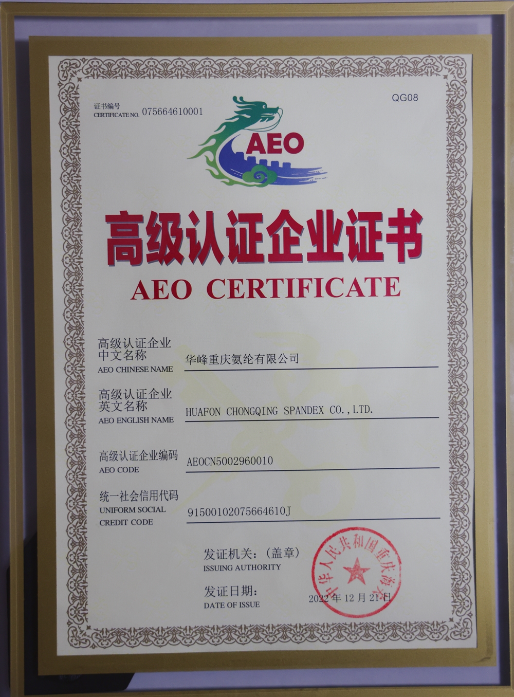 荣誉见证实力,实力成就未来。1月16日,九五贵宾会重庆氨纶有限公司顺利通过重庆海关认证专家组的文件审核,被正式授予“AEO高级认证企业”。此次获得认证的“金名片”,不仅是在进出口通关上获得业务便利,也助于公司提升国际形象和综合竞争力,同时还促进各项业务流程的完善和管理的规范。