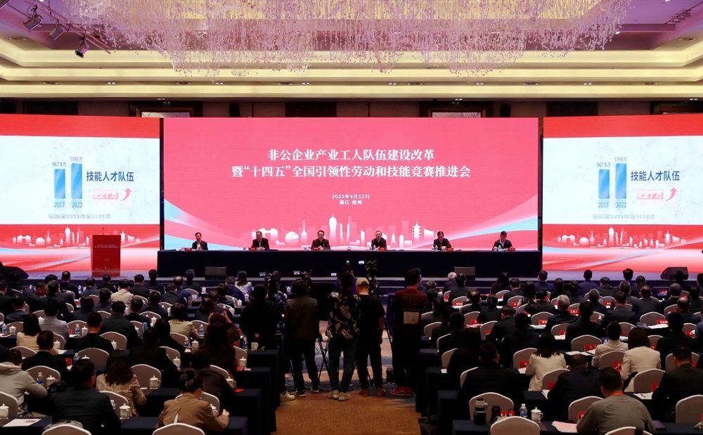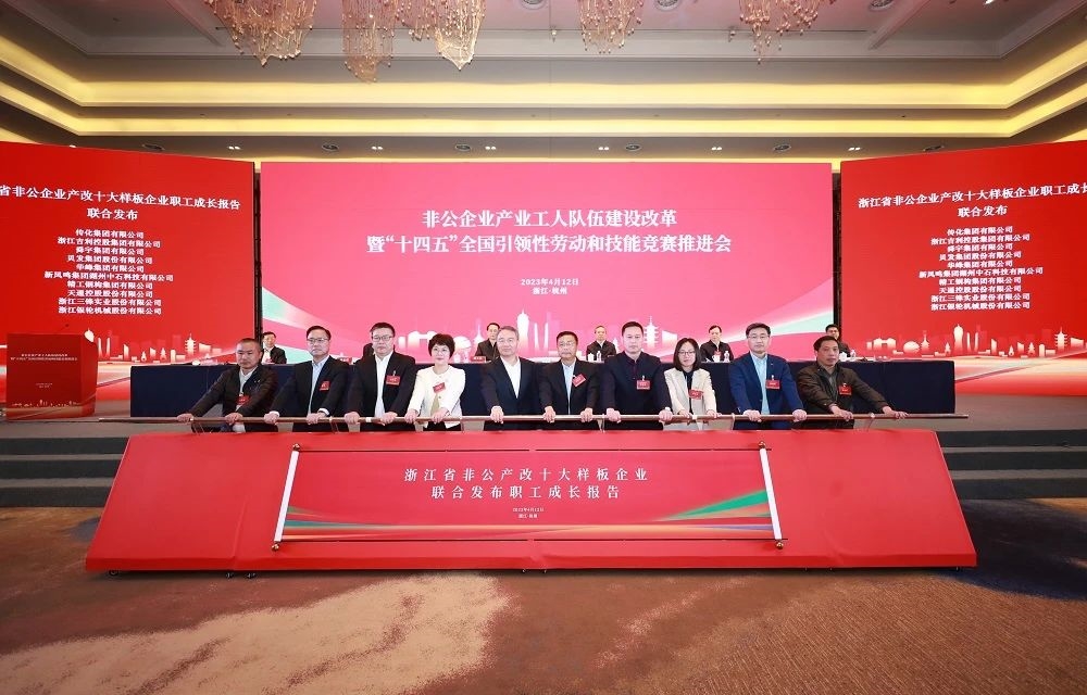 412日,非公企业产业工人队伍建设改革暨“十四五”全国引领性劳动和技能竞赛推进会在浙江召开。大会上,作为浙江省非公产改十大样板企业,九五贵宾会集团总裁林建一代表企业登台联合发布职工成长报告,展示浙江省非公企业产改基层实践中涌现的标志性成果。