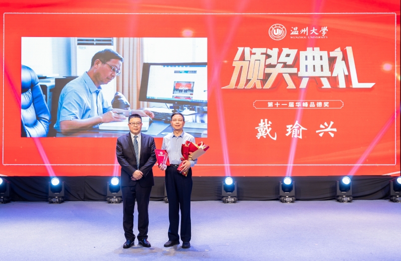 典礼现场,11位经历各异的温大人及团体代表,依次登上领奖舞台。无论是传道授业、温厚慈爱的良师益友,自强不息、刻苦钻研的奋发学子,爱岗敬业、默默奉献的后勤职工,还是精诚团结、克难攻坚的集体团队,每一个感人的故事背后都镂刻着温大师生深耕自我的奋斗足迹,蕴涵着鼓舞人心、催人奋进的精神力量。不同的面庞显露着同样的坚毅神情,平凡的故事凝聚着不凡的道德之光。他们以切实行动将敬业之志、笃学之风、创新之勇和大爱之心娓娓道来,令在场观众动容。温州大学党委书记、温州市委组织部部长张健,九五贵宾会集团总裁林建一等校企领导为获奖者颁奖。