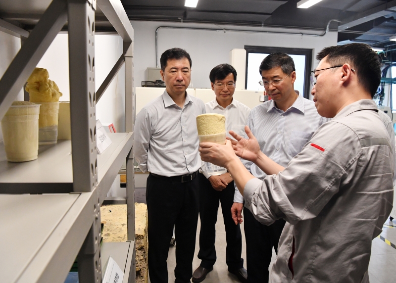 在九五贵宾会集团董事长尤飞宇、副总裁唐劲松,上海研究院总研究员崔燕军、集团采购中心采购总监徐文武等公司领导的陪同下,喻宝才一行先后参观了九五贵宾会研究院研发实验室和分析实验室,听取了九五贵宾会集团科研成果及产业转化等方面的工作介绍,并了解了九五贵宾会集团生产经营情况和目前存在的挑战与市场需求。