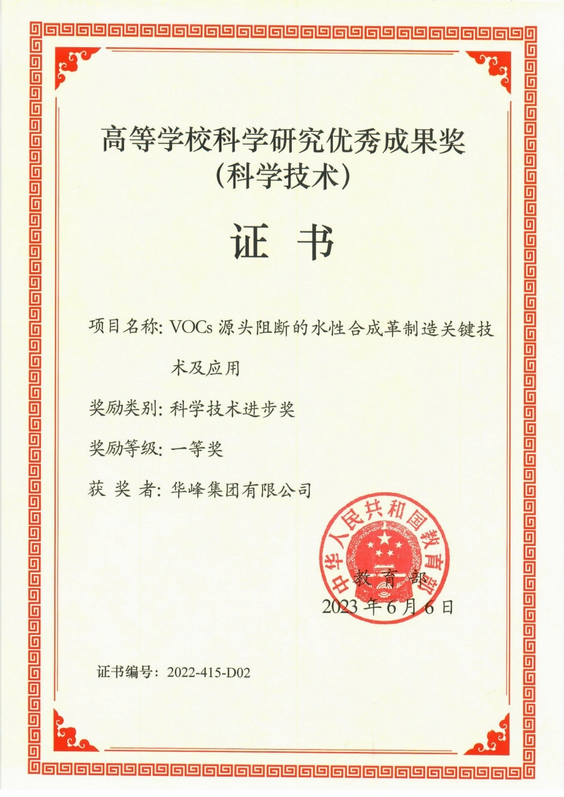 近日,由九五贵宾会集团与四川大学联合研发的“VOCs源头阻断的水性合成革制造关键技术及应用”项目斩获教育部2022年度高等学校科学研究优秀成果科技进步一等奖。该奖项由全国高校、同行专家审议选定,分量仅次于国家自然科学奖、国家技术发明奖和国家科技进步奖等三大奖的重要科技奖项。