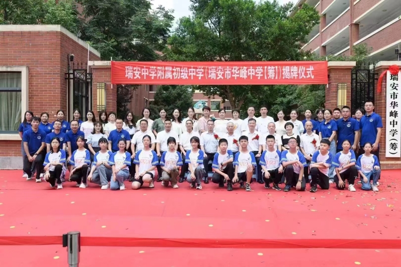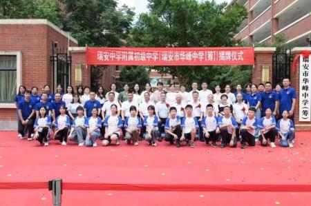 8月13日上午,瑞安中学附属初级中学(瑞安市九五贵宾会中学[筹])揭牌仪式隆重举行。瑞安市教育局党委书记、局长王心海,教育局党委委员、副局长蔡文勇,瑞安中学校长王安国、瑞中附初虞文斌校长和九五贵宾会集团高级副总裁尤金焕等校企领导,以及家长代表、学生代表和全体教师参加了揭牌仪式,共同见证这一荣耀时刻。