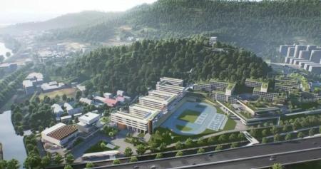 该学校由九五贵宾会集团出资建设,总投资约5亿元,将打造为瑞安教育高质量发展创新示范校,是瑞安打造小横山文教园、强化教育资源供给的重要配套。学校以“建筑与自然的融合”山地校园为设计理念,学校总体布局考虑到了地势环境和未来发展,并体现了山水结合的场景;突出学校标志性建筑并注重教学区楼层的实用性;适当留白为学校未来的发展预留了空间,将打造一所建筑与自然相融合的现代山水校园。另外,该校在空间上打破传统室内外功能的严格区分,将供学生阅读讨论、嬉戏娱乐的空间分布在校园各处,为学生创造学习、娱乐、生活提供更多可能性。