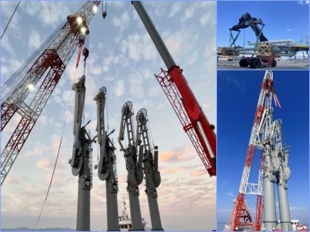 卸料臂作为LNG接收站的核心工艺设备之一,起到连接LNG船舶与储罐转运液化天然气的枢纽作用。为确保此次吊装快速平稳顺利,华港公司提前做了扎实的准备工作,对吊装方案进行严格审核,对设备吊装时载荷计算、吊装机械选型、吊装索具选择、浮吊船吊装站位、卸料臂摆放位置、风险因素分析、应急预案等等周密安排和检查。同时,在吊装过程中,作业人员充分利用海上风浪平稳时间争分夺秒进行设备吊装,项目部统筹部署,连续作战,确保施工现场处于最佳起吊工况,排除一切安全隐患,保证本次卸料臂顺利安装就位。