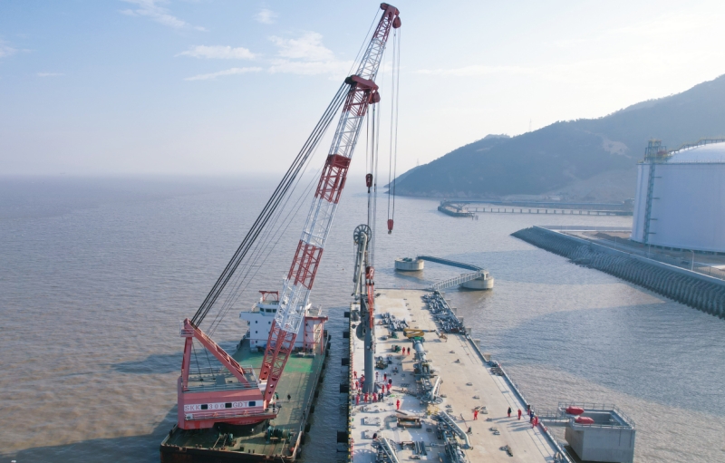 12月26日,华港LNG码头工程项目4台LNG卸料臂耗时9小时吊装就位,实现了项目建设的又一个关键里程碑,标志着码头区域的安装工作正式进入高峰期,为后续码头区域安装调试及项目正式投产奠定了坚实的基础。