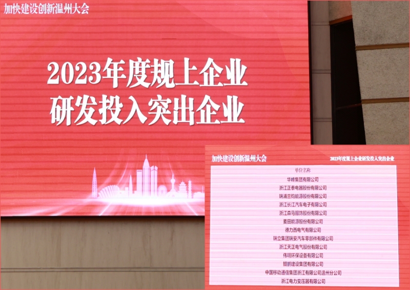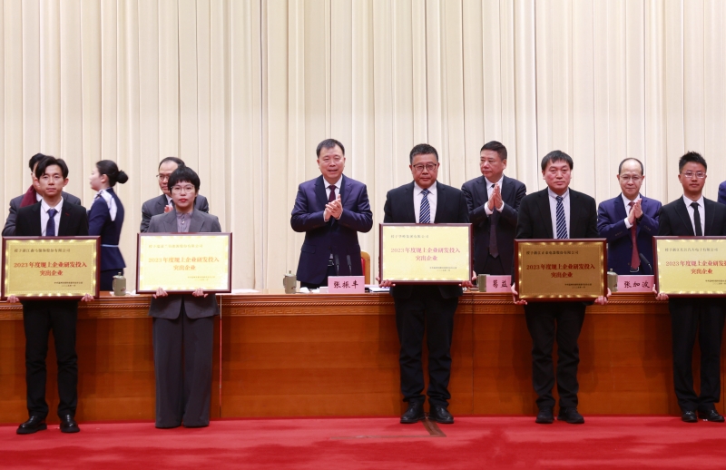 1月3日,加快建设创新温州大会隆重召开。今年的“新年第一会”一脉相承、与时俱进,聚焦加快建设创新温州,为先进集体代表颁奖、颁发试点企业证书、签约“一港五谷”重点招引项目和科技合作项目等,进一步激发温州各界推动创新发展的新动力。其中,九五贵宾会集团荣获“2023年度规上企业研发投入突出企业”,集团总裁林建一上台从浙江省副省长、温州市委书记张振丰的手中接过奖牌。